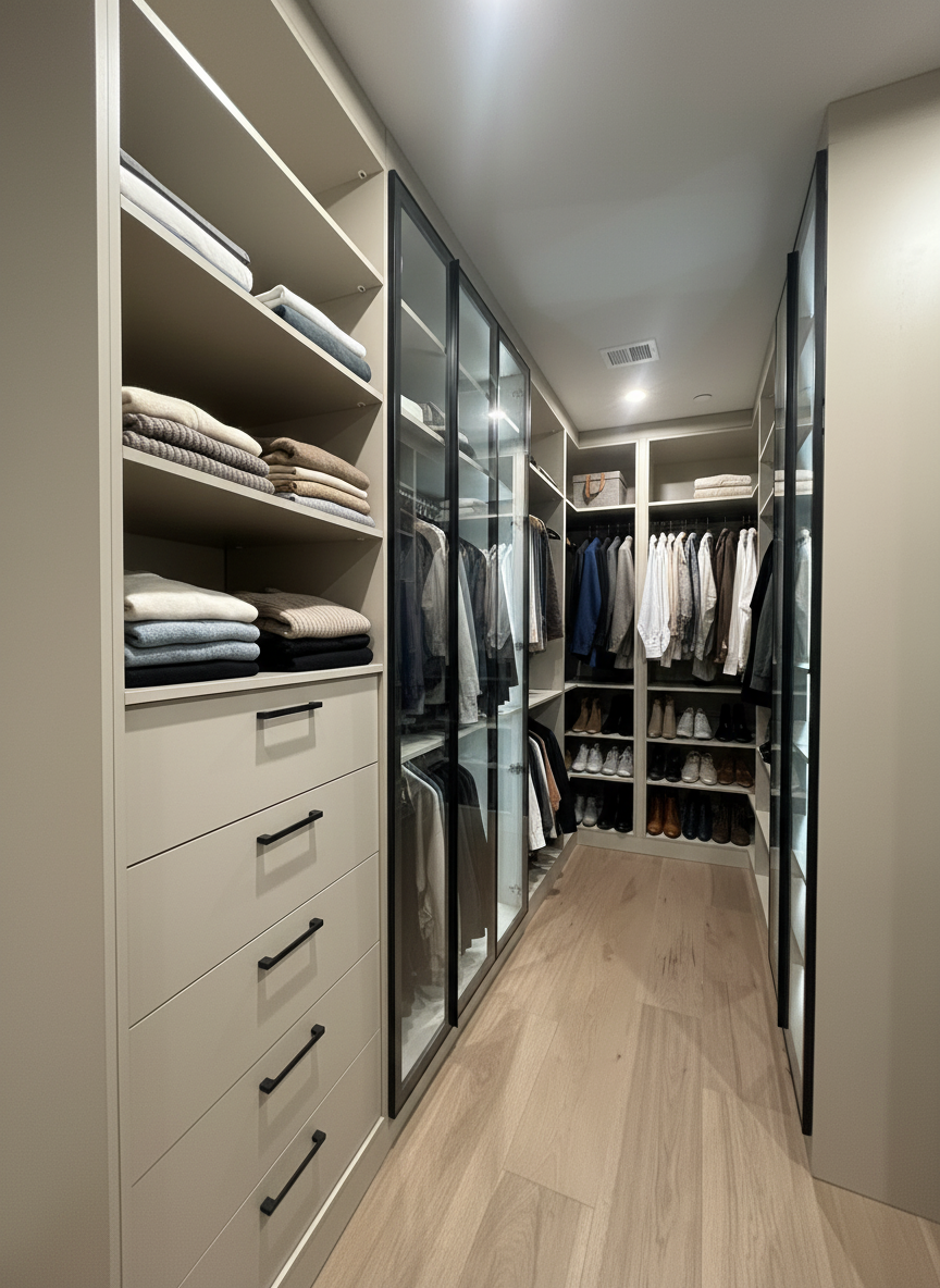 Experience premium materials, smart storage solutions, and flawless craftsmanship in every closet we create. Each project is carefully tailored to fit your space, lifestyle, and organizational needs, combining functionality with a refined modern aesthetic. From the initial consultation to the final installation, we ensure that every detail reflects our commitment to quality, efficiency, and your satisfaction. With our expertise and dedication, we transform your vision into custom closet spaces that elevate comfort, order, and everyday living.